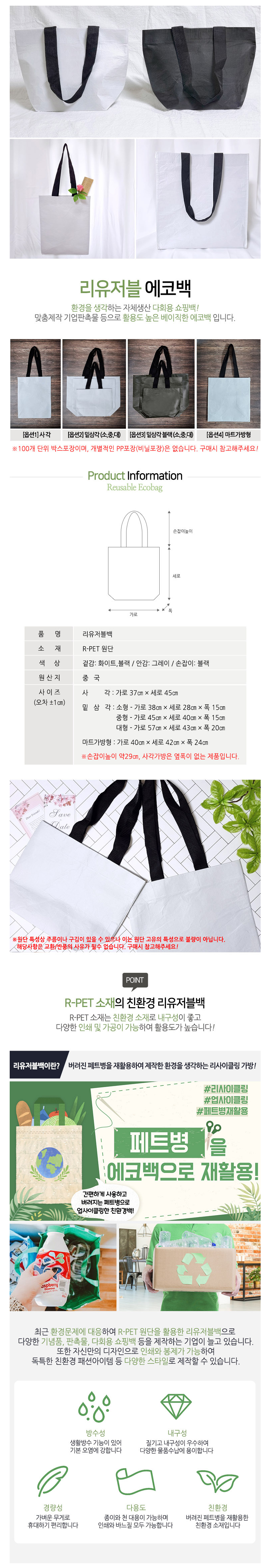 리유저블 사각 에코백 소형 (37cm x 45cm)