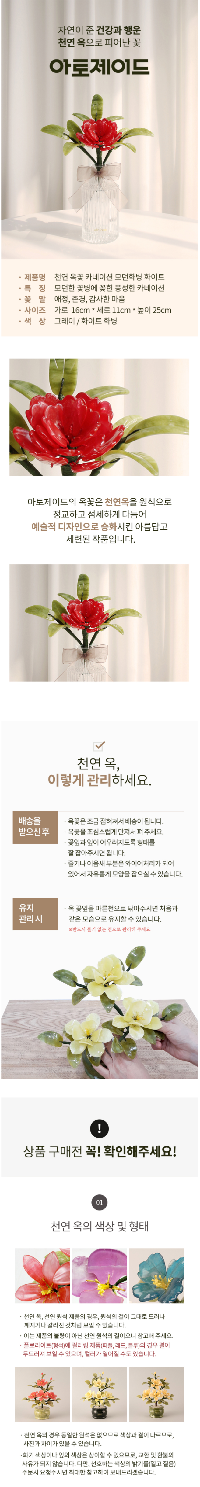 천연 옥꽃 카네이션 모던 화병 화이트 세트