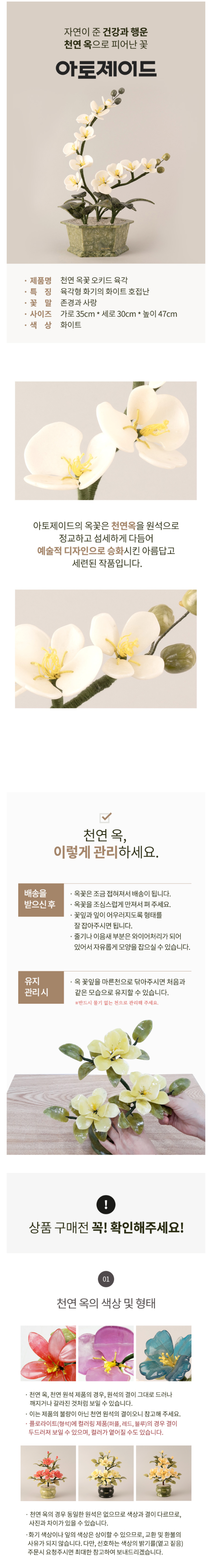 천연 옥꽃 오키드 육각 화이트 (명판)