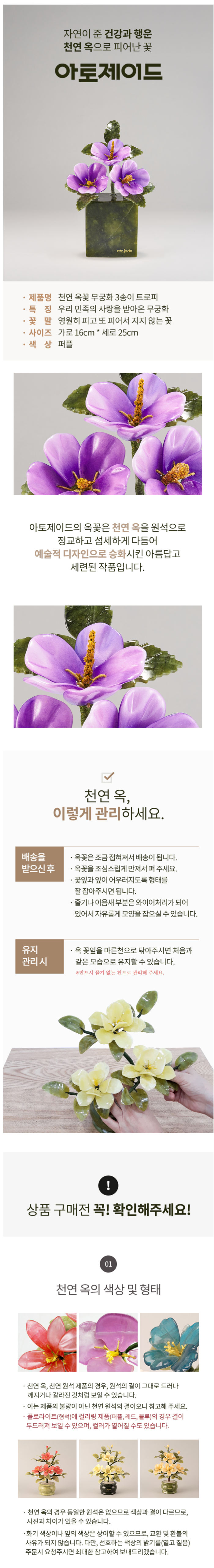 천연 옥꽃 무궁화 3송이 트로피 퍼플