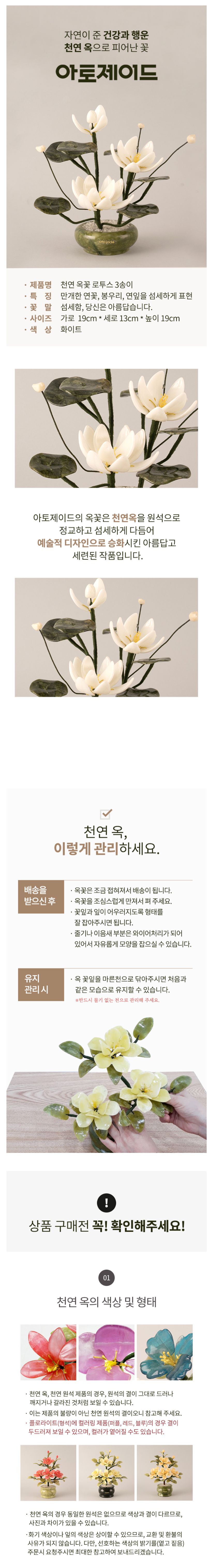 천연 옥꽃 로투스 3송이 화이트
