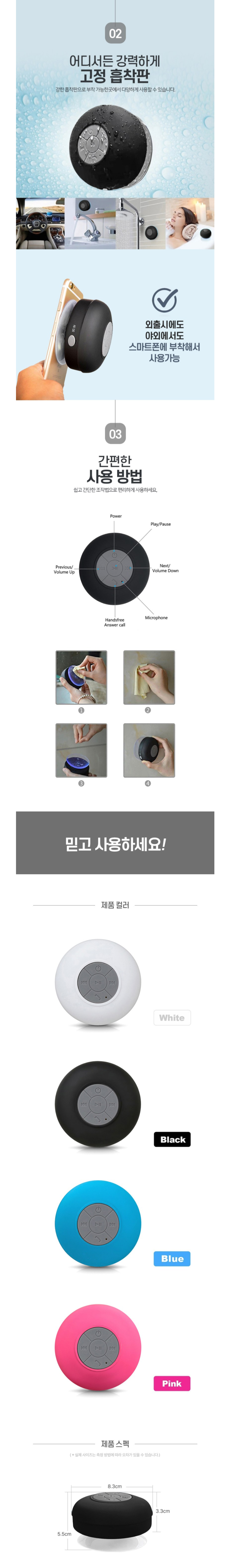 흡착형 방수 블루투스스피커