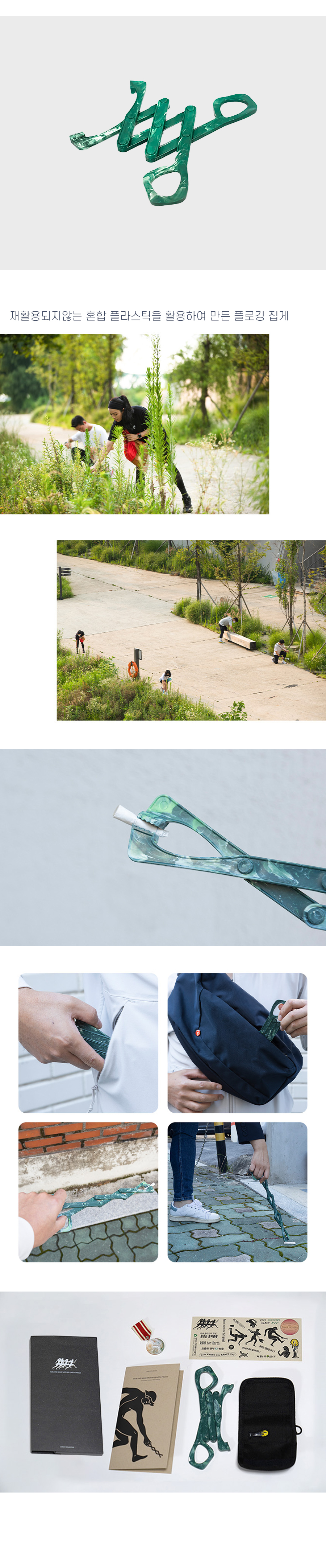 1.재활용되지않는 혼합플라스틱을 업사이클링하여 만든 플로깅 집게